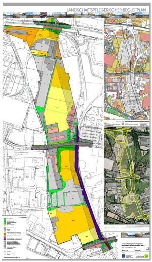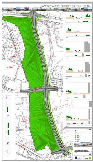 Die städtebauliche Entwicklung des zwischen der Essener Innenstadt und dem Stadtteil Altendorf gelegenen, fast 250 ha großen Areals des so genannten "Kruppgürtel" ist eine der größten Stadtentwicklungsmaßnahmen in Nordrhein Westfalen. Die Gesamtentwicklung des Kruppgürtels ist auf 40 Jahre angelegt. Zentrale Bausteine darin sind der Bau eines ca. 20 ha großen Parks und einer neuen Hauptstraße (Ostumgehung Altendorf). Die Grundlagen für die Umsetzung des Parks und des zentralen Abschnitts der Straße werden durch die Aufstellung eines Bebauungsplanes geschaffen, zu dem das umweltbüro essen den Landschaftspflegerischen Fachbeitrag erarbeitet hat. Bereits im Vorfeld der Planung hatte das umweltbüro essen an einer Rahmenvereinbarung über forstrechtliche Belange mitgewirkt. Das Plangebiet ist durch ein kleinteiliges Mosaik aus Brachflächen unterschiedlicher Sukzessionsstadien und Wald sowie umfangreiche befestigte und bebaute Flächen gekennzeichnet. Die Realisierung des Parks soll in mehreren Bauabschnitten erfolgen, da Teile des Geländes erst mittel- bis langfristig zur Verfügung stehen. Der Park wird auf einem "Sicherungsbauwerk" entstehen, das aus dem Aushub vom Bau der Straße sowie weiterer Bauvorhaben aufgebaut wird. Der Park selbst wird als "Waldpark" gestaltet, um auf diesem Wege im Park den notwendigen Ausgleich aller Eingriffe in Waldflächen sicherstellen zu können, die im gesamten Kruppgürtel über 40 Jahre entstehen werden. |